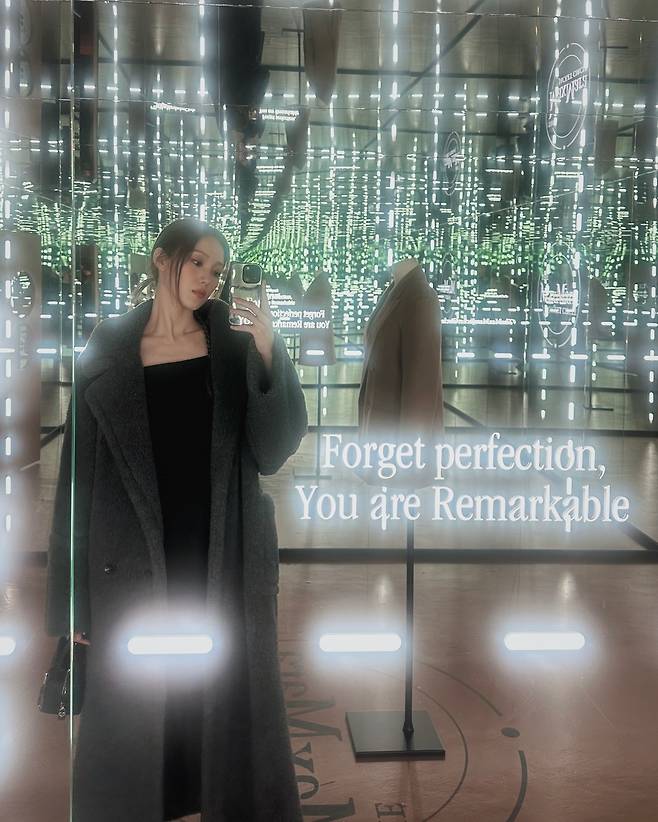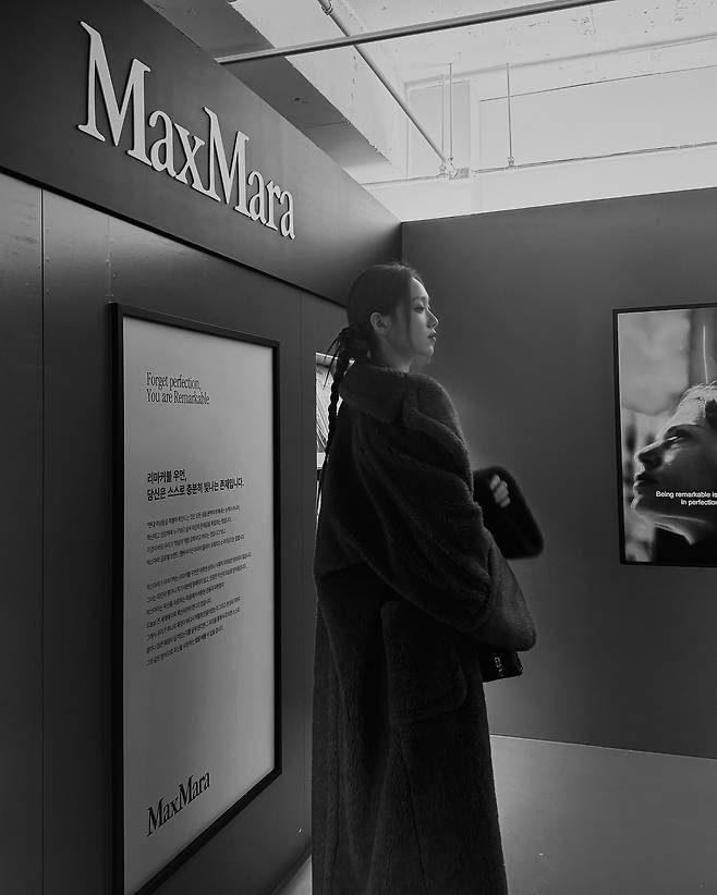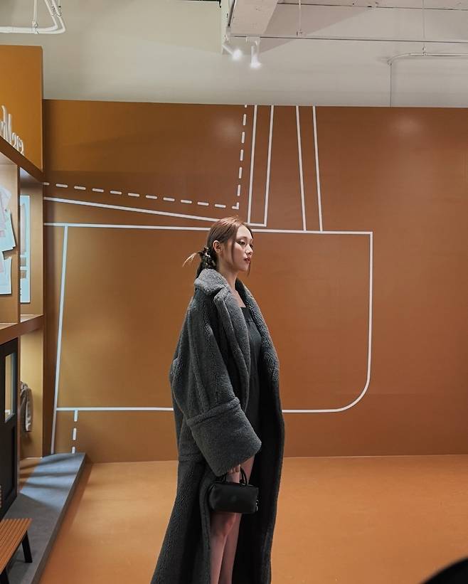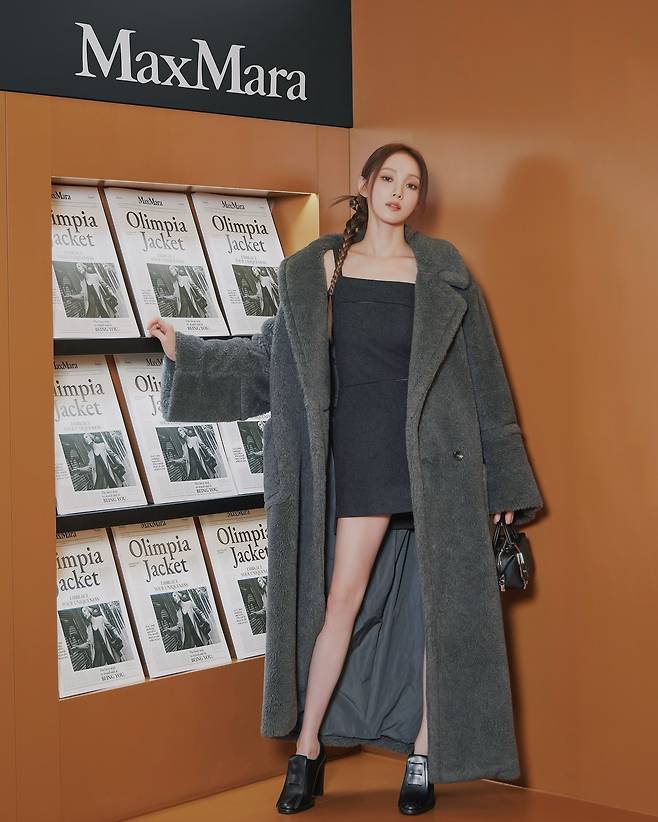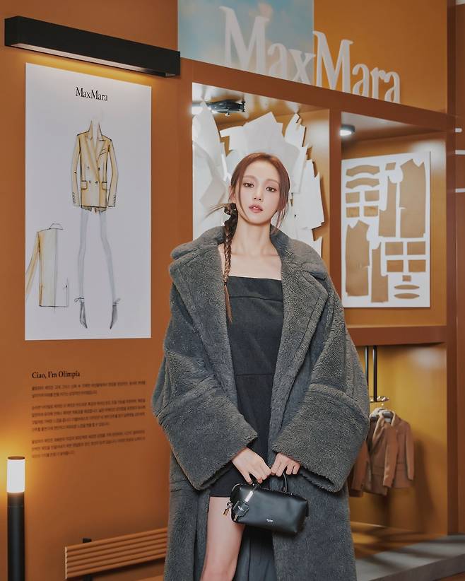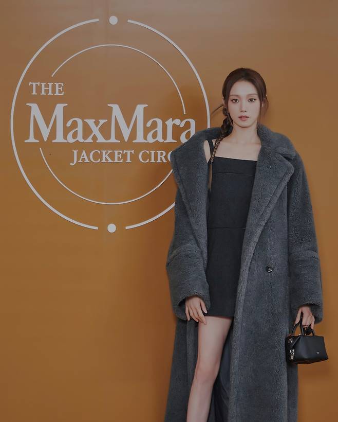 maxmara 행사에 참석한 이성경은 미니 원피스에 롱코트를 입고 8등신 기럭지를 뽐내고 있습니다.