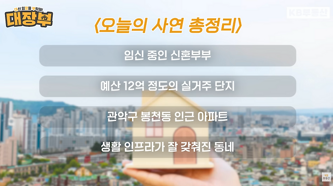 과연 12억 원(종잣돈+대출)의 예산으로 임신 중인 아내와 곧 태어날 아기를 위해 전문가가 추천한 봉천동의 '보석 같은 단지'는 어디일까요?