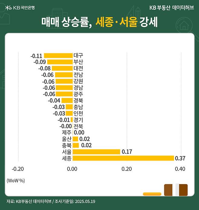 세종시 전국 상승률 TOP, 서울 꾸준한 상승세