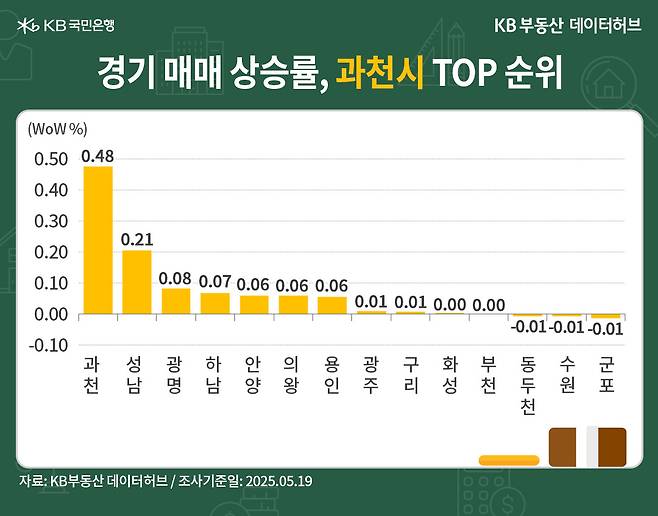 경기 매매가격 상승 순위는 과천시가 0.48% 올라 1순위입니다. 8ㆍ9단지 이주는 6월 말까지로 종료되지만, 5단지 이주가 (이주기간 6/16 ~ 9/30) 본격적으로 시작되면서 전반적으로 매수세가 강한 모습입니다. 토지거래허가구역 해제 시에는 강남권 상승에 연동해 매수세가 늘었고, 토허제가 확대 발표 시에는 강남권 주변 지역인 과천에 대한 풍선효과 기대치가 반영되고 있습니다. 2순위는 분당구 상승세 지속에 힘입은 성남시입니다. 하단가에 분포한 매물들이 소진되면서 가격은 점진적으로 우상향을 나타냈습니다.