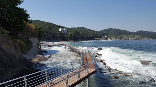 호미반도 해안둘레길은 비교적 쉬운 난이도로, 바위, 마을, 해변 백사장, 푸른 동해를 감상하며 산책할 수 있는 코스입니다. 평화로운 마을 분위기와 아름다운 자연경관을 동시에 즐길 수 있는 곳입니다.