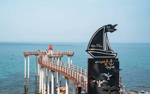 보릿돌교는 갯바위 모양이 보리를 닮아 ‘보릿돌’이라는 이름이 붙었습니다. 170m 길이의 보릿돌교는 바다 위를 걷는 듯한 기분을 느낄 수 있습니다.