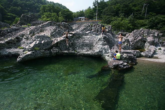 하옥계곡은 동대산과 내연산에서 흘러내리는 맑은 물줄기로, 여름에도 차가운 계곡물에서 물놀이를 즐기기에 최적입니다. 사계절 내내 맑은 계곡물로 힐링할 수 있는 장소입니다.