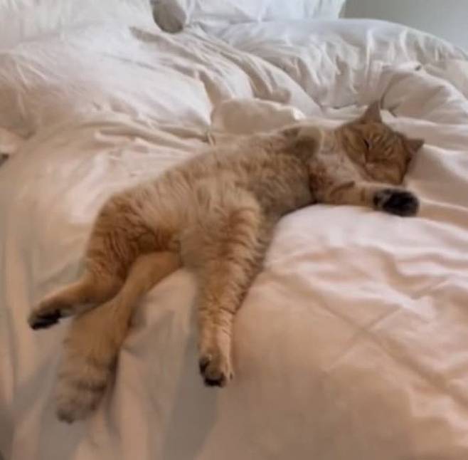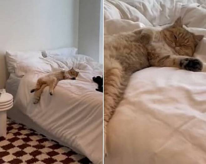 사연은 이렇습니다. SNS상에는 침대가 자기 침대라도 되는 것 마냥 아주 자연스럽게 드러누워 있는 고양이 영상이 올라왔죠.