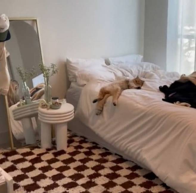 공개된 영상에 따르면 고양이는 집사랑 함께 지내고 있는 룸메이트 방에 들어가 있었는데요. 아주 자연스럽게 침대까지 올라간 고양이.