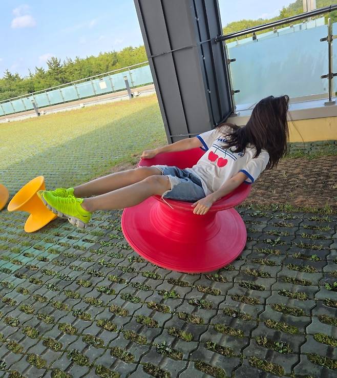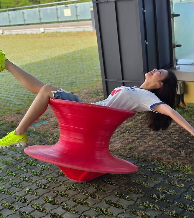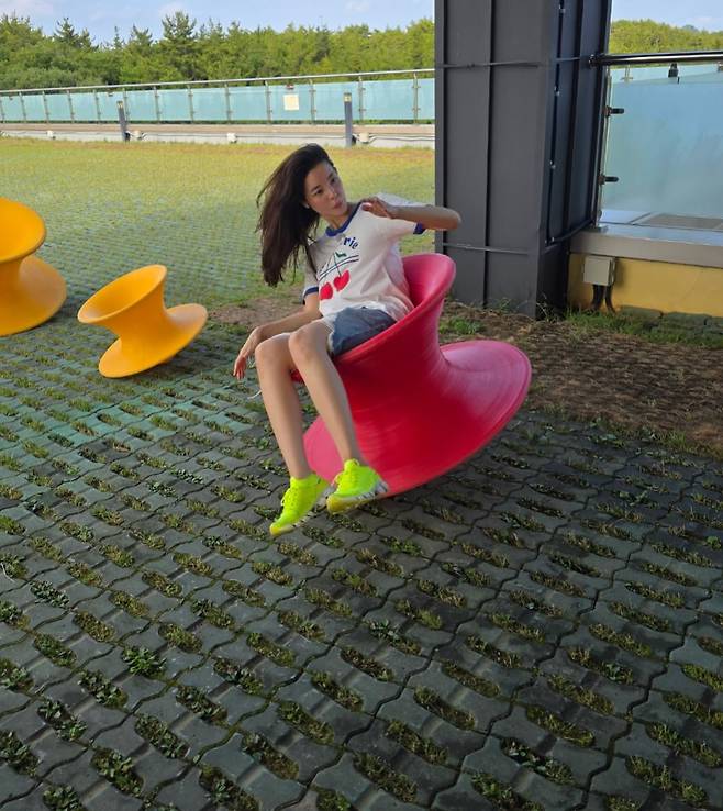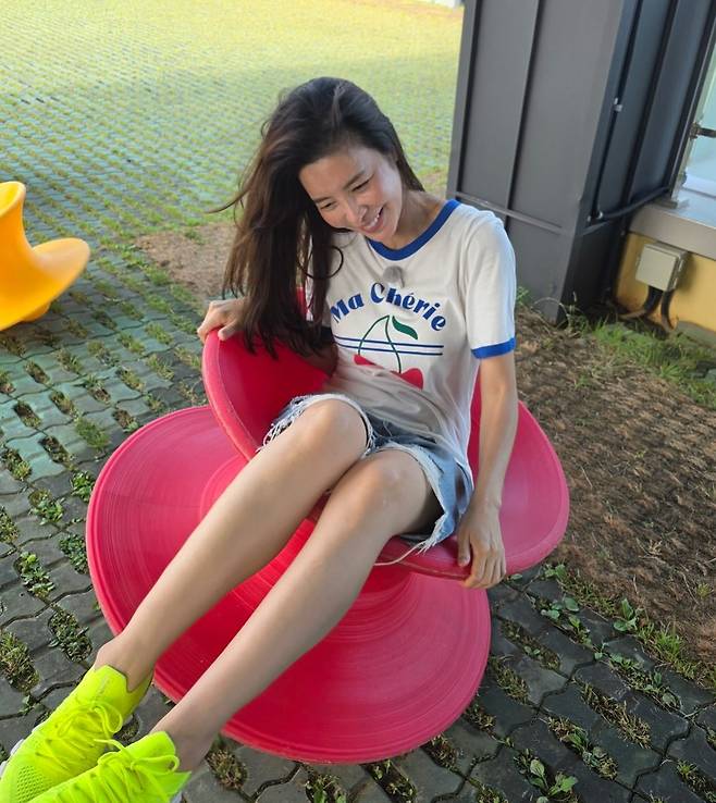 비비드한 컬러의 회전 의자 위에서 장난기 어린 모습으로 웃고 있는 그녀를 보며, 과거 인터뷰 속 “10년 가까이 작품이 안 들어와 은퇴를 생각했다”는 말이 겹쳐지네요.