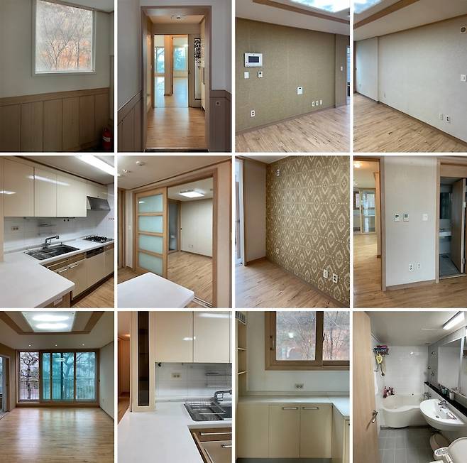 다행히 거실과 방은 확장이 되어있었습니다. 주방은 뒤쪽 베란다에 냉장고를 두는 구조였는데 아무래도 불편할 것 같아서 확장 공사도 진행하기로 했습니다. 처음에 이 집을 봤을때 황금색 벽지에 정말 놀랐었는데 오랜만에 봐도 여전히 아찔하네요 ㅎㅎ