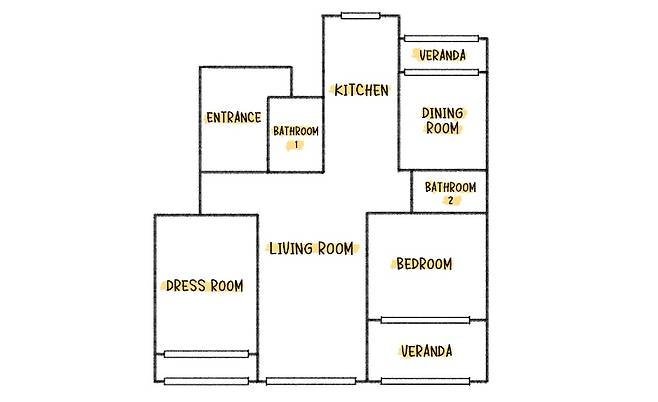 25평 - 방 3, 화장실 2 (+ 베란다 확장)