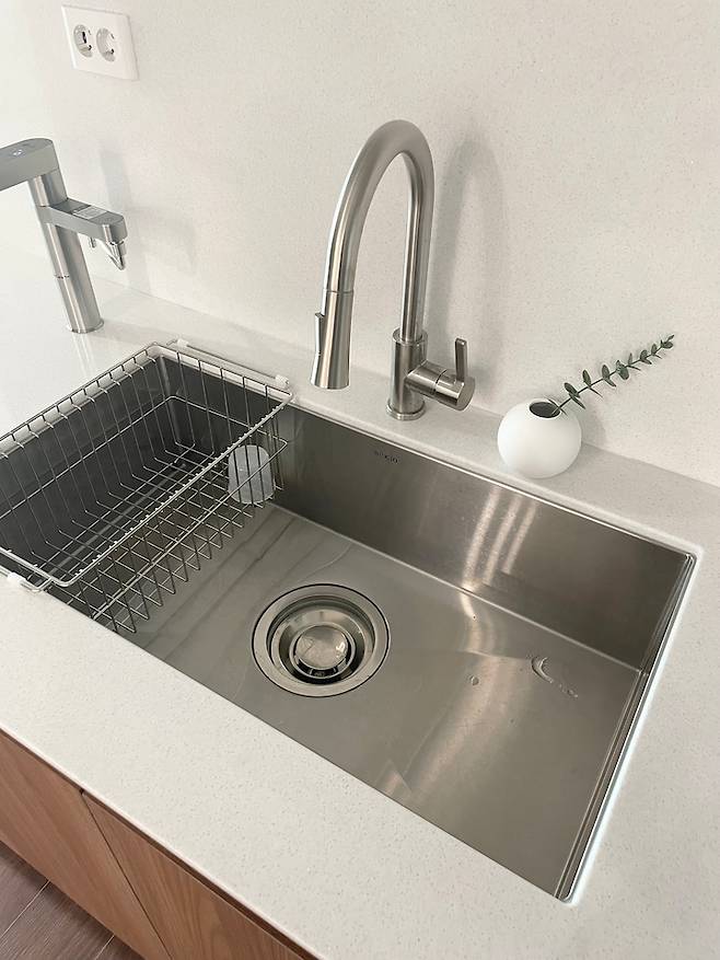사각 싱크볼과 거위목 수전은 최고의 조합이죠.