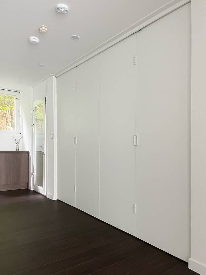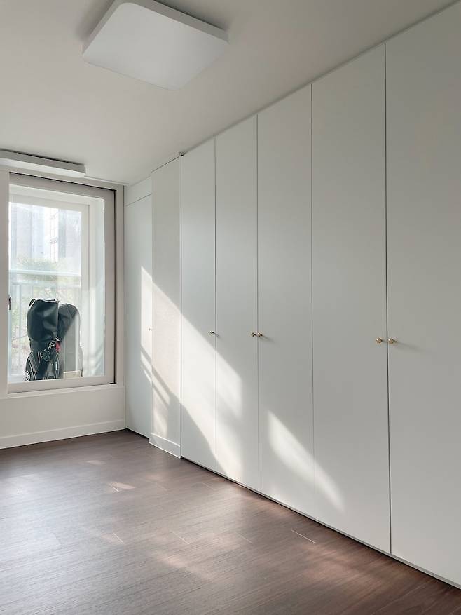반대쪽 벽은 붙박이장을 넉넉하게 짜서 그날 입을 옷을 여유롭게 고를 수 있어요.