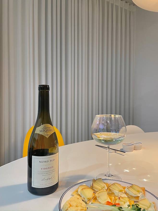 평소 우리 부부가 즐기는 화이트 와인을 마시며 분위기를 내곤 해요.