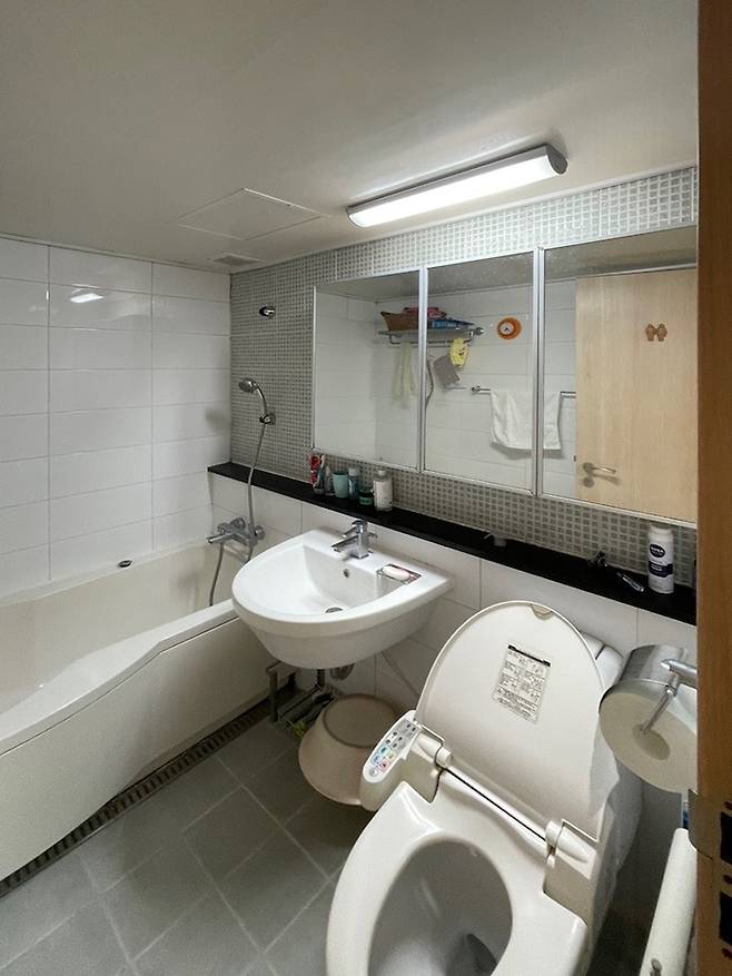 첫 신혼집에서 손에 꼽히게 사용했던 욕조는 철거하고 대신 샤워부스를 설치했어요. 물이 사방으로 튀지 않아 물 때가 적고 샤워부스를 제외한 공간을 건식으로 쓸 수 있어서 좋아요.