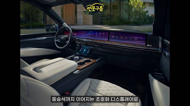 신형 에스컬레이드의 가장 극적인 변화는 실내 공간이다. 운전석부터 동승석까지 하나로 이어진 55인치 커브드 OLED 디스플레이(운전석 35인치, 동승석 20인치)가 적용돼 마치 미래 자동차에 탑승한 듯한 느낌을 준다. 기존 38인치 디스플레이에서 크게 확장된 이 시스템은 차원이 다른 시각적 경험을 제공한다.