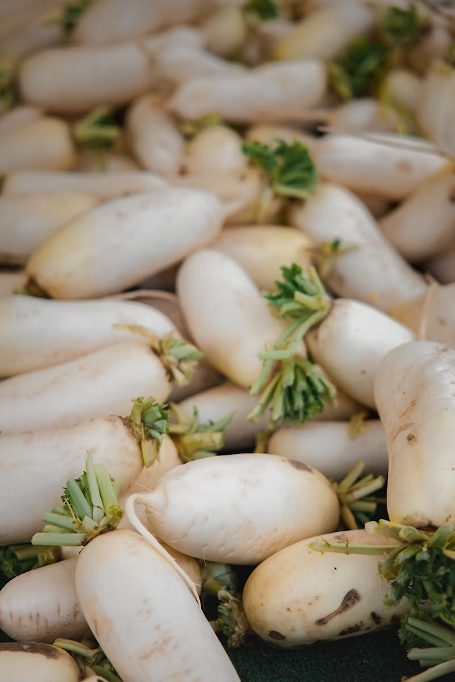 무에는 소화를 촉진하고 소화 불량을 완화하는 성분이 포함되어 있어 소화기 건강을 지원할 수 있습니다.