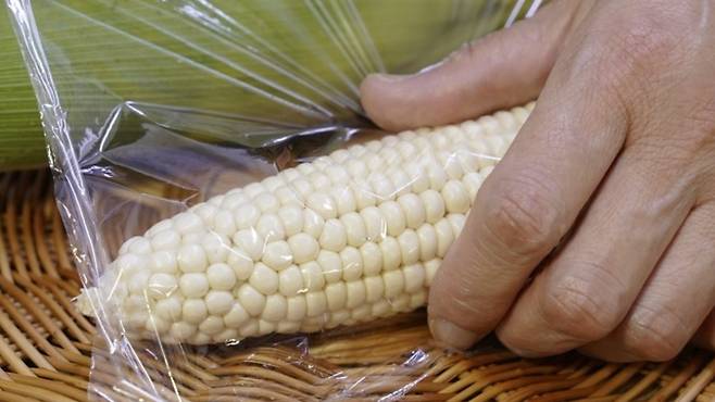 옥수수를 사 온 지 얼마 안 되고 금세 먹을 것을 보관하는 방법인데요. 이럴 땐 바로바로 꺼내 먹어야 하기 때문에 수분이 없어지지 않게끔 보관해 주는 것이 중요해요.
