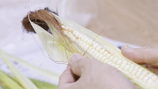이때 껍질과 옥수수수염만 제거해 주세요. 옥수수 심지 부분은 단맛이 나오기 때문에 제거하지 않는 것이 좋아요.