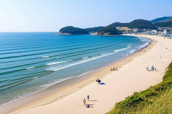 상주 은모래비치의 첫인상: 눈부신 백사장과 푸른 바다의 조화