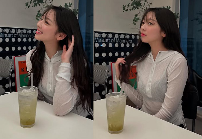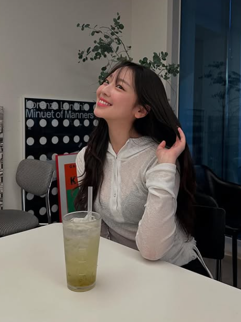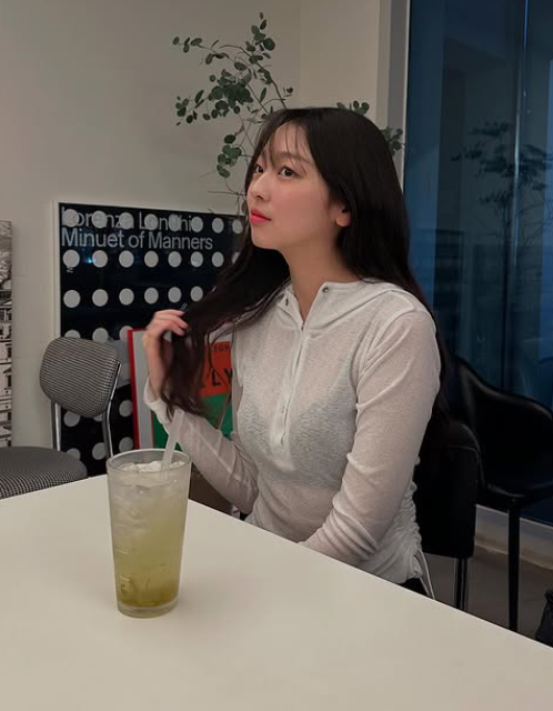 이수민은 캐주얼한 시스루 후드 티셔츠를 입고 스타일을 선보였습니다. 후드티의 옆 스트링 디테일로 핏을 은은하게 잡아주며, 캐주얼하면서도 그녀의 분위기와 어울리는 청순한 룩을 완성했습니다. 이수민만의 개성 있는 스타일로, 심플하면서도 세련된 느낌을 자아냈습니다.