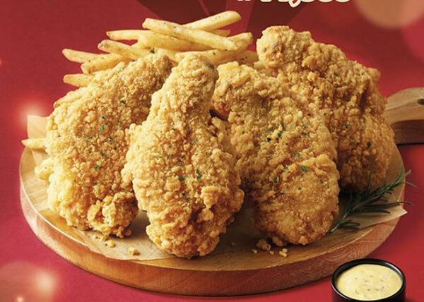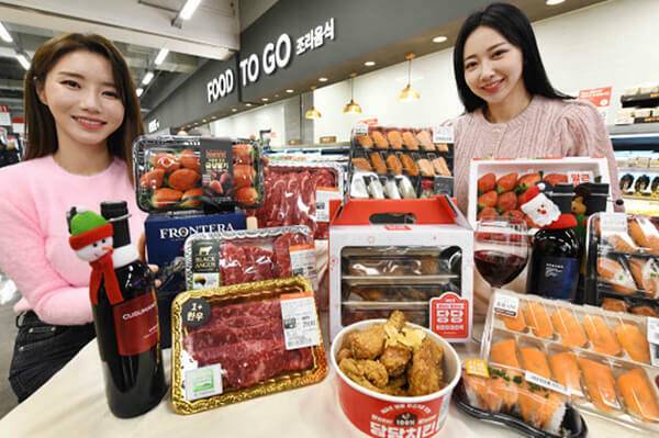 치킨 대전의 불을 붙인 홈플러스는 인기 제품 ‘당당 시리즈’를 총망라한 패키지를 출시했다. 당당 후라이드 치킨과 당당 국산 돼지 후라이드를 비롯해 훈제삼겹살, 마늘닭강정, 한판닭강정, 칠리새우, 탕수육 등 총 7가지의 인기 델리 메뉴를 함께 담아낸 당당 버라이어티 팩(19,990원)이다. 특제 갈릭 소스로 마늘의 풍미를 입히고 갈릭 플레이크와 칩으로 고소함과 바삭함을 더한 ‘당당 트리플갈릭 치킨(8,990원)’도 출시했다.