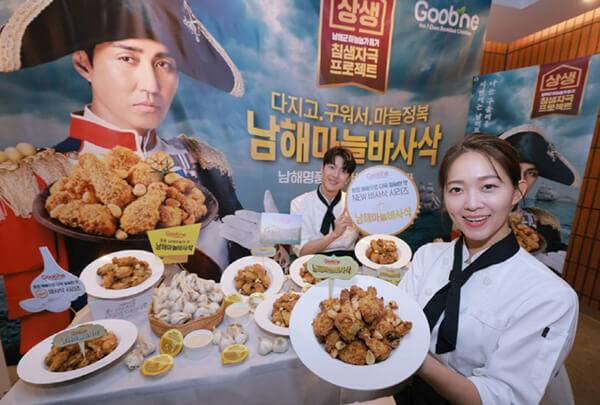 지앤푸드가 운영하는 오븐 요리 프랜차이즈 굽네는 100% 남해마늘을 사용한 신제품 ‘남해마늘 바사삭’을 출시했다. 마늘 농가 상생 프로젝트로 탄생한 새로운 바사삭 시리즈로, 남해 지역에서 생산한 마늘을 다져 오븐에 구워내 고소함과 알싸한 끝맛을 느낄 수 있다. 오븐으로 구운 고소한 알마늘 토핑과 함께 먹으면 더 깊은 남해마늘 풍미를 경험할 수 있다. 한 마리 판매가는 19,000원이다.