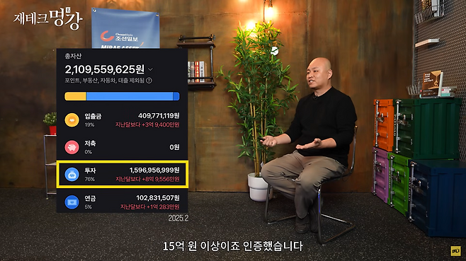 40대에 경제적 자유를 이룬 박성현 작가의 투자 노하우를 담은 ‘재테크 명강’ 1부가 공개됐다. 18년간 대기업에서 직장생활을 한 박 작가는 달러와 주식 등 자산의 분할 매수, 분할 매도 투자 전략을 통해 100억대 자산가로 변신했다. 부동산을 제외한 금융자산은 15억이 넘는다. 박 작가는 이번 ‘재테크 명강’ 시리즈 강의를 통해 자신의 투자법과 부에 대한 생각, 경제적 자유에 대한 철학 등을 공유할 예정이다.