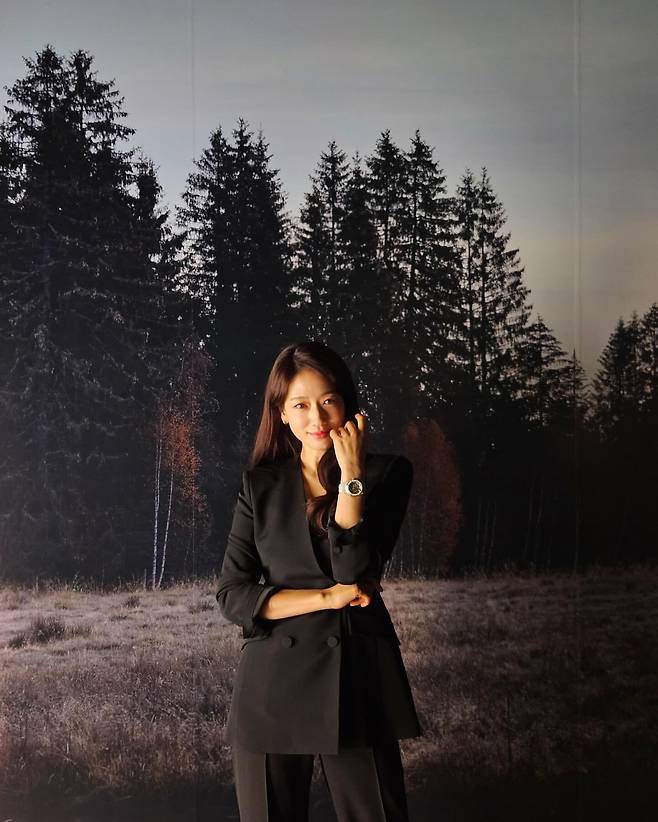 박신혜는 블랙 더블 브레스트 수트를 착용해 모던하고 시크한 매력을 강조했다. 심플한 디자인의 수트에 은은한 액세서리를 더해 고급스러운 분위기를 연출하며, 배경의 숲 이미지와 조화를 이루어 차분하면서도 강렬한 인상을 남긴다.