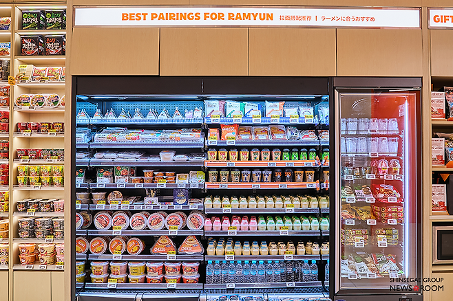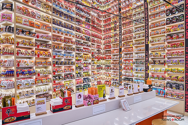 ์ ์๊ณค MD: ๋ผ๋ฉด์ ์ธ๊ตญ์ธ์ด ๊ฐ์ฅ ์ ํธํ๋ K-ํธ๋ ์ค ํ๋์ ๋๋ค. ์ ํฌ๋ ์ง์ง ํ๊ตญ์ ๋ผ๋ฉด ๋ฌธํ๋ฅผ ๊ฒฝํํ๊ฒ ํ๊ณ ์ถ์์ต๋๋ค. ๋ผ๋ฉด ์์นด์ด๋ธ๋ฅผ ๊ตฌ์ถํ๊ณ , ๊น์น, ๊น๋ฐฅ ๋ฑ ๋ถ์๊ณผ ์ ๊ธฐ์ ์ผ๋ก ์กฐํฉํด ํ๊ตญ์ธ์ด ์ฆ๊ธฐ๋ ๋ฐฉ์ ๊ทธ๋๋ก ๋ฌธํ๋ฅผ ์ฒดํํ ์ ์๋๋ก ๊ณต์ ๋ค์์ฃ . K-ํธ๋๋ฉ ๋ช ๋์ ์ ๋ฐฉ๋ฌธํ์ ๋ค๋ฉด ๋ผ๋ฉด ์์นด์ด๋ธ ์๊ณผ ๋ผ๋ฉด ์ฒดํ ๊ณต๊ฐ์ ๊ผญ ๊ฒฝํํด ๋ณด์๊ธธ ์ถ์ฒํฉ๋๋ค!