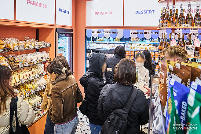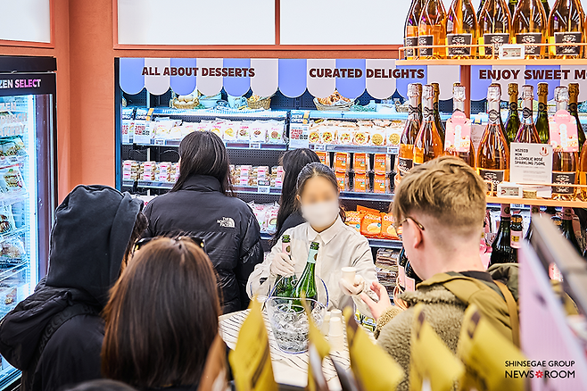 ๋ฐ๋ฏธ์ด MD: ๊ณ ๊ฐ์ด ๋์ ํธ๋ฅผ ๋ง๋ณด๋ ๊ฒฝํ๊ณผ ๊ณต๊ฐ์ ๊ฐ์ฑ์ ๋์์ ํฅ์ ํ๊ธธ ๋ฐ๋์ต๋๋ค. ๊ทธ๋์ ๋งค์ฅ ๋ด๋ถ์ ํฌํ ์กด์ ๋ฐฐ์นํ๊ณ , ์์ธ์ฒ์ ๋ถ์๊ธฐ๋ฅผ ๋๋ ์ ์๋ ์ผ์ธ ํ ๋ผ์ค ๊ณต๊ฐ์ ๋ง๋ จํ์ฃ . ๊ณ ๊ฐ์ด ์์ ์ ์ทจํฅ์ ๋ง๋ ๊ณต๊ฐ์ ๋๋ฆด ์ ์๋๋ก ์ฒดํํ ์ค๊ณ์ ๊ฐ์ฅ ํฐ ๊ณต์ ๋ค์์ต๋๋ค.