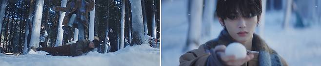 뮤직비디오는 겨울 분위기를 물씬 풍기는 설원에서 시작됩니다. 노란 꽃을 든 태산은 누군가에게 다가가는데요. 이내 사람을 착각한 듯 놀란 표정을 짓습니다. 때마침 날아온 눈덩이에 맞아서인지, 고백에 실패한 충격 탓인지 쓰러지는 태산. 정신을 차리자 정체를 알 수 없는 다섯 명의 인물이 그를 둘러싸고 있습니다.