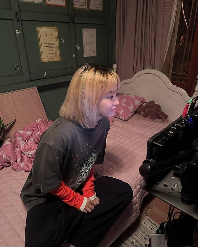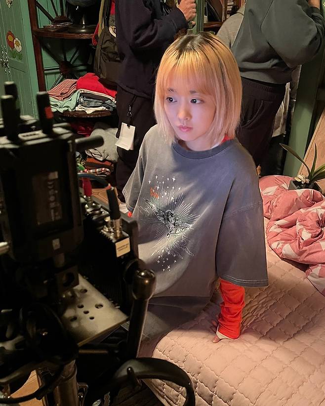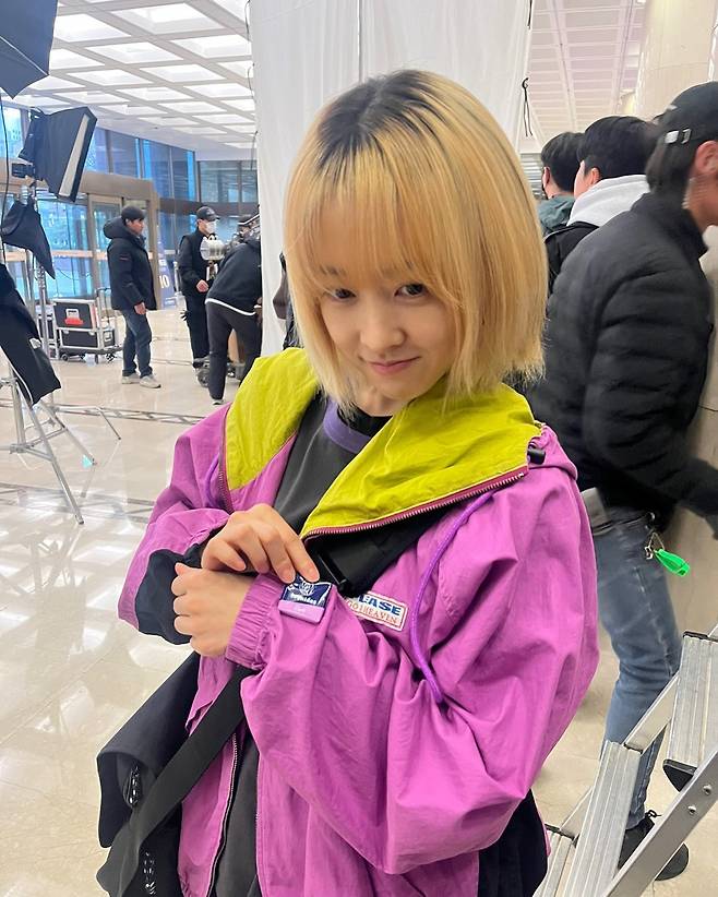 그러다 갑자기 금발 쇼트에 박시 티셔츠?