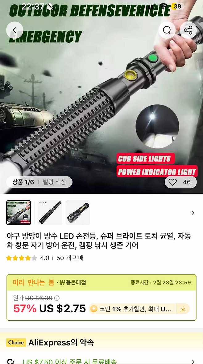 두 제품 모두 강력 플래시 + 몽둥이 개념입니다