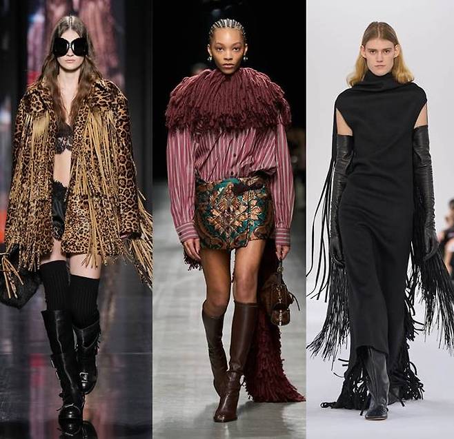 밀라노 패션위크 런웨이에서는 프린지의 인기가 강력하게 계속됐다.