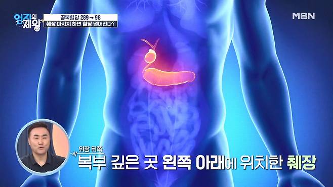 위장 뒤쪽 복부 깊은 곳 왼쪽 아래에