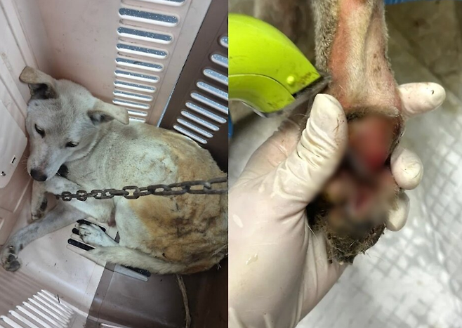 불에 달궈진 뜬장 때문인지 어미의 발바닥과 가슴 등에는 심한 화상 상처가 남았다고.