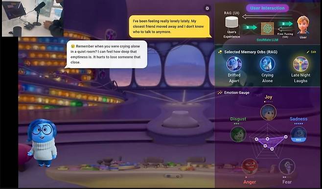 16일 KAIST 본원에서 열린 시연에서 연구진이 “요즘 정말 외로워”라고 토로하자 소울메이트 칩이 꽂힌 태블릿 PC 속 AI는 0.2초 만에 “네가 저번에 조용한 방에서 울고 있을 때를 기억해? 그때처럼 공허해보여”라며 과거의 경험을 떠올렸다. 좀 더 용기를 주는 답변을 달라고 하자 “너는 사람들과 깊이 연결되는 법을 알고 있잖아. 새로운 우정이 널 기다리고 있어”라고 답했다. 연구를 이끈 유회준 교수는 “기존 LLM은 데이터센터에서 미리 학습한 정보를 바탕으로 사용자에 대한 ‘추론’만이 가능하지만, 소울메이트는 사용자 자체를 ‘학습’해 실시간 대화가 가능하다는 점이 가장 큰 특징”이라고 설명했다.