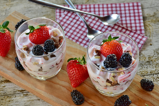 무지방보다 그릭요거트나 일반 플레인 요거트를 선택하세요. 당분이 없는 요거트에 견과류나 블루베리 등 천연재료를 더하면 혈당 상승을 완화하면서 영양 밸런스를 잡을 수 있습니다.