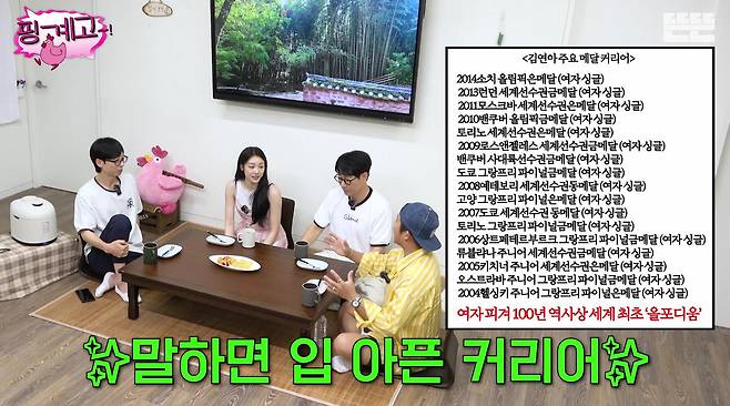 그러자 김연아는 “제가 방송인도 아니고, 활동이 애매하다. 감사하게도 장기 계약이 이어지지만 가끔 찔릴 때가 있다”며 솔직한 마음을 드러냈다. 이어 “미디어에 노출될 일이 많지 않아, <핑계고> 같은 자리에 나와 한 번씩 드러내는 게 좋겠다 싶었다”고 덧붙였다.
