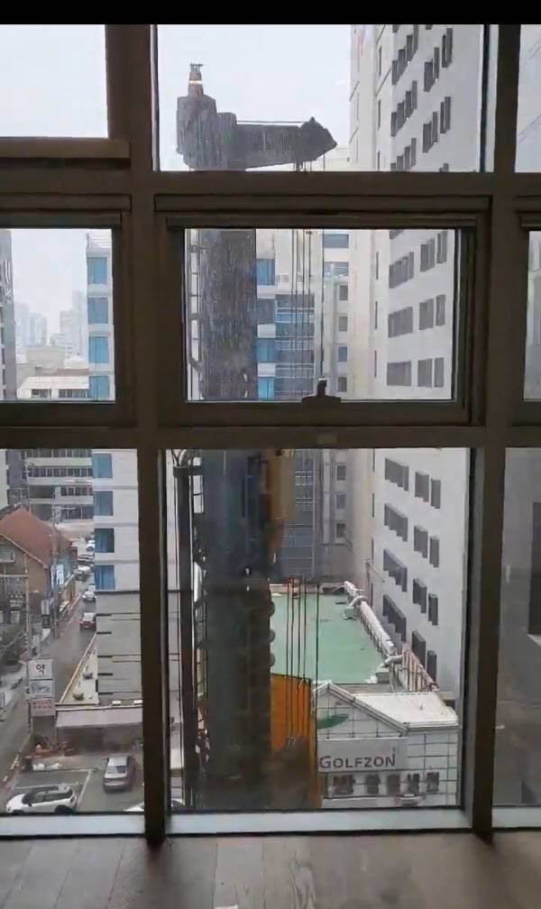 3.3㎡당 1억원이 넘는 분양가에도 완판을 기록한 하이엔드 오피스텔 ’파크텐삼성' 계약자들은 최근 사전점검을 하러 갔다가 경악을 금치 못했다. 눈앞에 거대한 검은 색 초대형 기계가 가동되고 있었던 것. 창문 너머에서 벌어지는 일이지만, 거리가 너무나 가까워 위협적인 느낌마저 받았다고 했다.