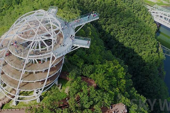 스카이워크는 바닥을 투명한 유리로 만들어 공중을 걷는 듯 아슬아슬한 스릴감을 선사하는 산책로다.
