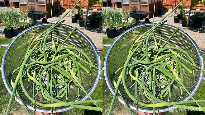 3. 데친 마늘쫑은 찬물에 헹구지 않고 넓게 펼쳐 식힌다.