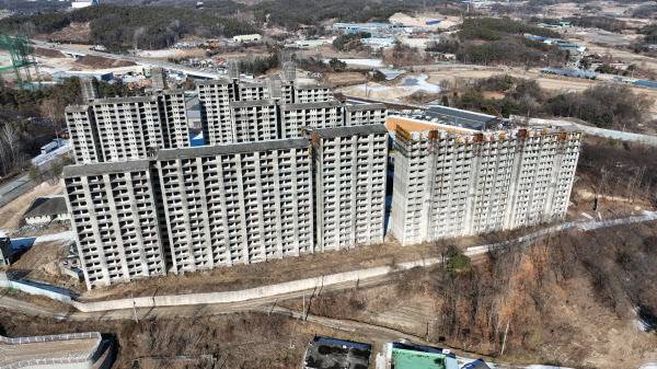 [땅집고] 경기 이천시 장호원읍 이황리. 성남시와 이천시를 잇는 경충대로 바로 옆에는 외벽이 벗겨지고 콘크리트 골조가 그대로 드러난 아파트 단지가 서 있다. 한낮인데도 현장은 음산한 분위기다. 오랜 시간 사람의 손길이 닿지 않은 이 아파트는 국내 대표적인 ‘흉물 아파트’로 꼽혀 왔다. 이 아파트는 1998년 지하 1층~지상 16층, 930가구 규모로 주택건설사업계획 승인을 받고 착공했다.