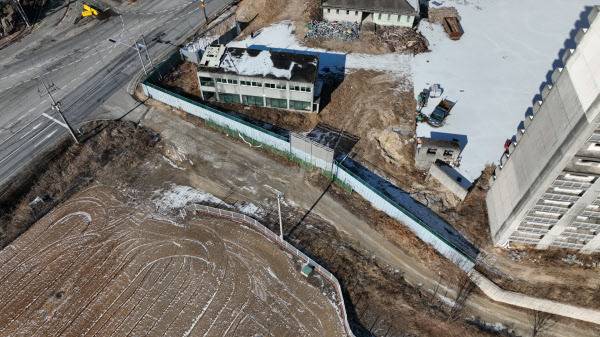 이처럼 장기간 사업이 멈춘 배경은 단순한 자금난이 아닌 ‘진입도로 소유권 분쟁’이 있었다. 당초 이 사업은 1998년 시행사 초원주택이 착공할 당시 아파트 부지와 진입도로를 하나의 사업계획으로 묶어 인허가를 받았다. 그러나 이후 시행사 초원주택이 자금난으로 공사를 중단했고, 시행사가 여러 차례 교체되는 과정에서 아파트 부지와 진입도로가 각각 분리돼 매각됐다.