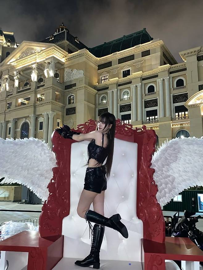 대형 의자와 천사 날개 배경 속 ‘다크 엔젤’ 콘셉트로 팬심 저격