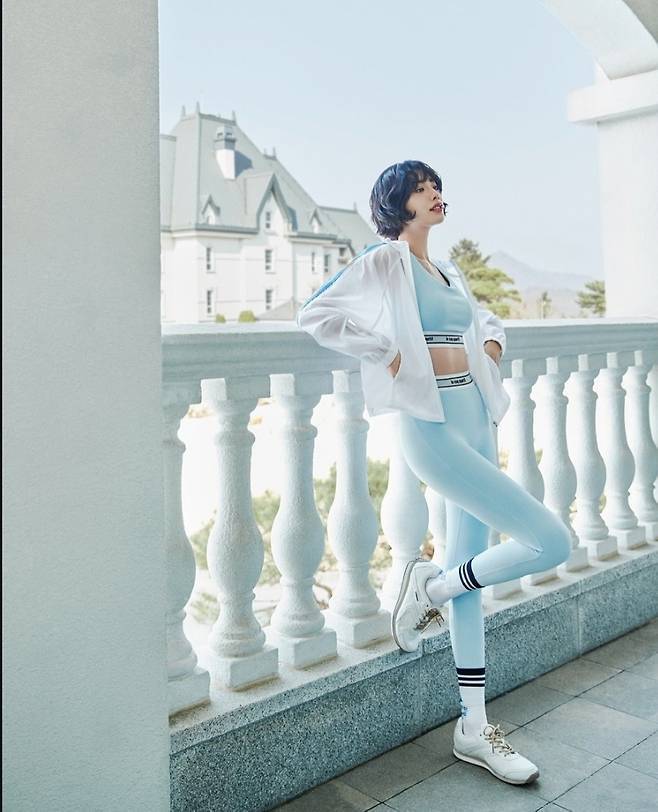 나나는 몸에 딱 맞는 브라탑과 레깅스를 매치해 군살 하나 없는 슬림한 라인을 강조했으며, 허리에 살짝 묶은 바람막이 점퍼로 스타일링에 포인트를 더했습니다.