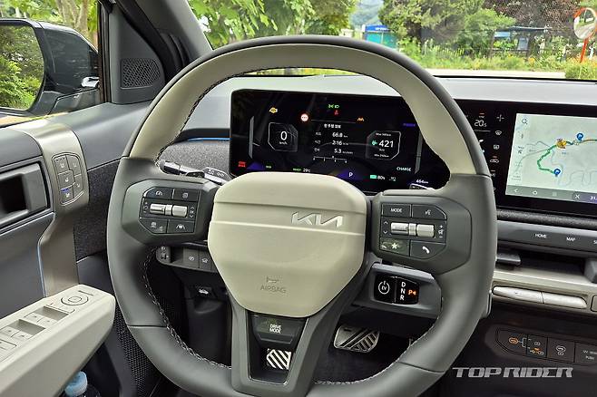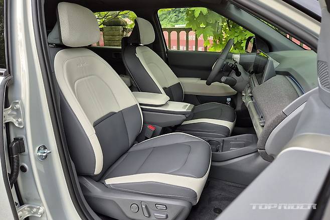 운전석의 시트포지션은 좋은 편이다. 전방은 물론 측후방 시야가 좋은 편이고, 사이드미러 시야각도 우수한 수준이다. 운전이 서툰 소비자들이 편하게 다룰 수 있는 구성이다. 특히 해치백 스타일로 전장이 짧고, 후륜기반 E-GMP 전기차 대비 회전반경이 좁은 점은 반갑다.