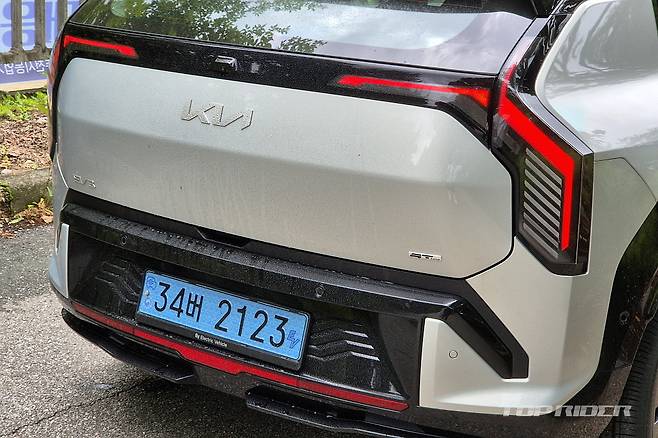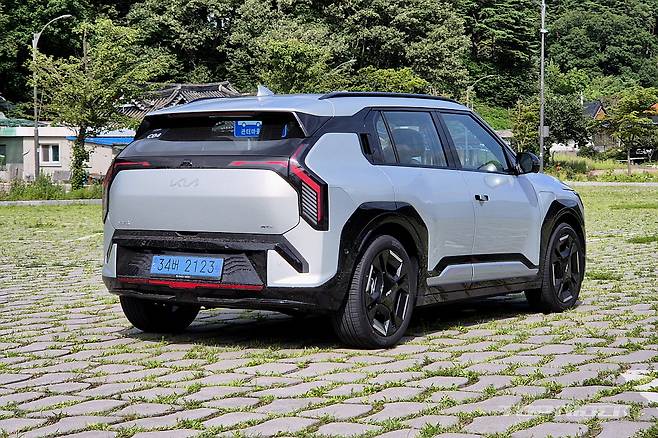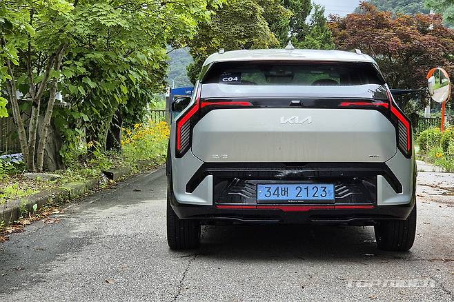 후면부 디자인은 특히 맘에 드는 부분으로, 과거 아이언맨 마스크가 연상되는 디자인 요소를 포함한다. GT-라인이 스포티한 요소를 갖고 있지만, EV3에는 기본형 디자인이 더욱 어울리는 모습이다. 스탠다드 모델은 17인치 휠과 19인치 휠의 전비와 주행거리가 거의 같다.