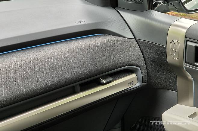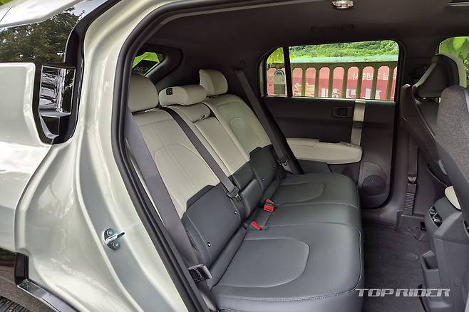 실내는 친환경 소재와 패브릭 등 미래지향적인 소재와 디자인이 인상적이다. 앰비언트 라이트나 도어 암레스트, 크래쉬패드의 패브릭 마감, 그리고 소프트 재질 크래쉬패드와 암레스트는 상위 트림인 어스에 적용되는 사양이다. 리클라이닝을 포함한 2열 시트는 편하다.