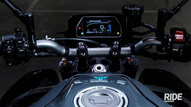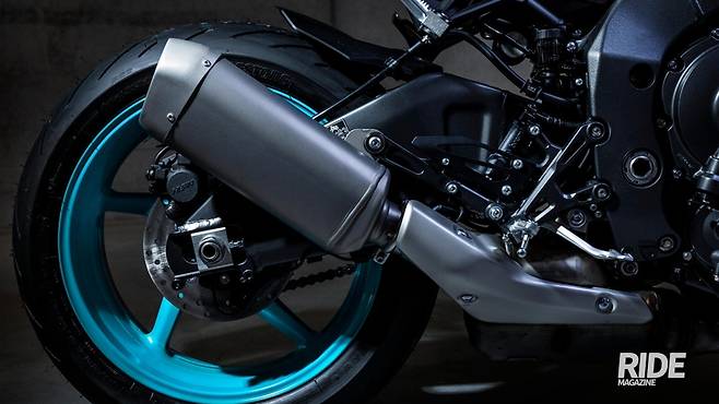 레이스에 최적화된 YZF-R1이지만, 반대로 생각하면 일반도로에서는 조금 아쉬울 수 있다는 얘기다. 따라서 야마하는 이 R1의 4기통 999cc 엔진을 디튠해 알루미늄 단조 피스콘, 오프센 콘로드, 도금 실린더, 스틸 콘로드 등 채용하고 크랭크축 관성 모멘트를 높여 토크 성능을 강화함으로써 저중속대를 강화했다. 성능은 최고출력 165.9마력/11,500rpm, 최대토크 112Nm/9,000rpm으로 트랙 주행도 문제 없는 강력함을 보여준다.