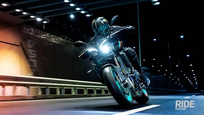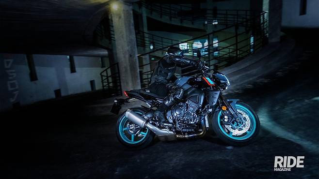 이런 분위기에서 다양한 제품들이 선보이는데, 야마하의 경우 ‘마스터 오브 토크’라는 캐치프레이즈를 바탕으로 하는 네이키드인 MT 시리즈를 통해 이 시장을 공략하고 있다. 최근에는 야마하의 주력 라인업이라 해도 과언이 아닌데, 야마하에서 생산하는 다양한 매뉴얼 모터사이클용 엔진 라인업에 모두 대응하는 제품으로 초심자부터 숙련자까지 모두에게 사랑받고 있다. 이런 MT 시리즈의 기함격인 모델이 R1의 심장을 장착한 MT-10이다.