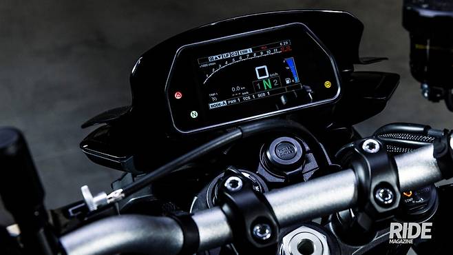 물론 이렇게 높은 성능을 모두가 100%까지 사용할 수 있는 건 아니다. 이제 막 리터급에 입문한 사람이라면 부담스러움을 느낄 정도인데, 이런 부담을 덜 수 있도록 전자식 스로틀과 출럭 모드(PWR)를 더했다. 이를 통해 가장 강력한 1단계부터 가장 부드러운 4단계까지 스로틀 응답성을 조절해 개인 취향이나 상황에 맞춰 라이딩을 즐길 수 있다. 퀵시프트는 기본 적용되어 더 빠른 가속의 재미를 경험할 수 있게 돕는다.